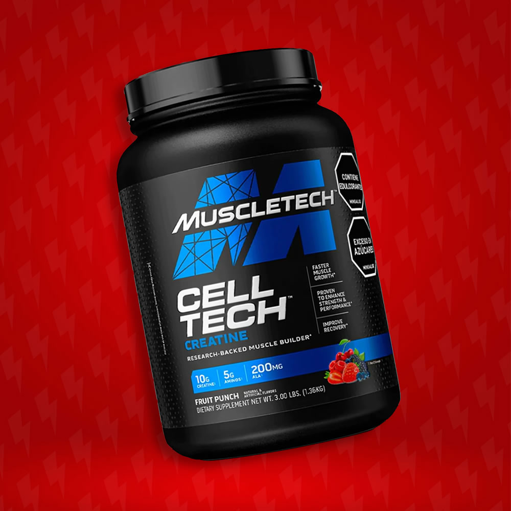Maximiza tu potencial de crecimiento muscular y recuperación con CELL-TECH de MuscleTech, disponible en presentaciones de 3 Libras y 6 Libras, la fórmula de creatina científicamente diseñada que ha sido un pilar en el mundo del culturismo por décadas.