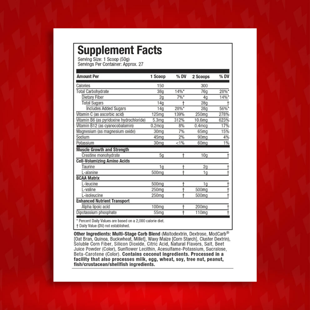 Este poderoso voluminizador celular no es solo creatina, sino una matriz avanzada que incluye 5g de una mezcla de monohidrato de creatina de alta pureza, la cual trabaja sinérgicamente con un complejo de carbohidratos de múltiples etapas (maltodextrina, dextrosa, ModCarb™) para generar un pico de insulina post-entrenamiento. Este pico de insulina es crucial, ya que actúa como un transportador, dirigiendo la creatina directamente a tus músculos y reponiendo rápidamente las reservas de glucógeno para una recuperación óptima.